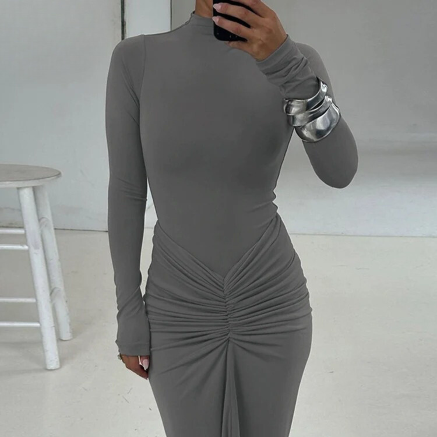 The solid color design allows for versatile styling; dress it up with heels for a night out or keep it casual with ankle boots. Crafted from high-quality materials, this maxi dress is not only chic but also durable, ensuring you look fabulous all season long.
